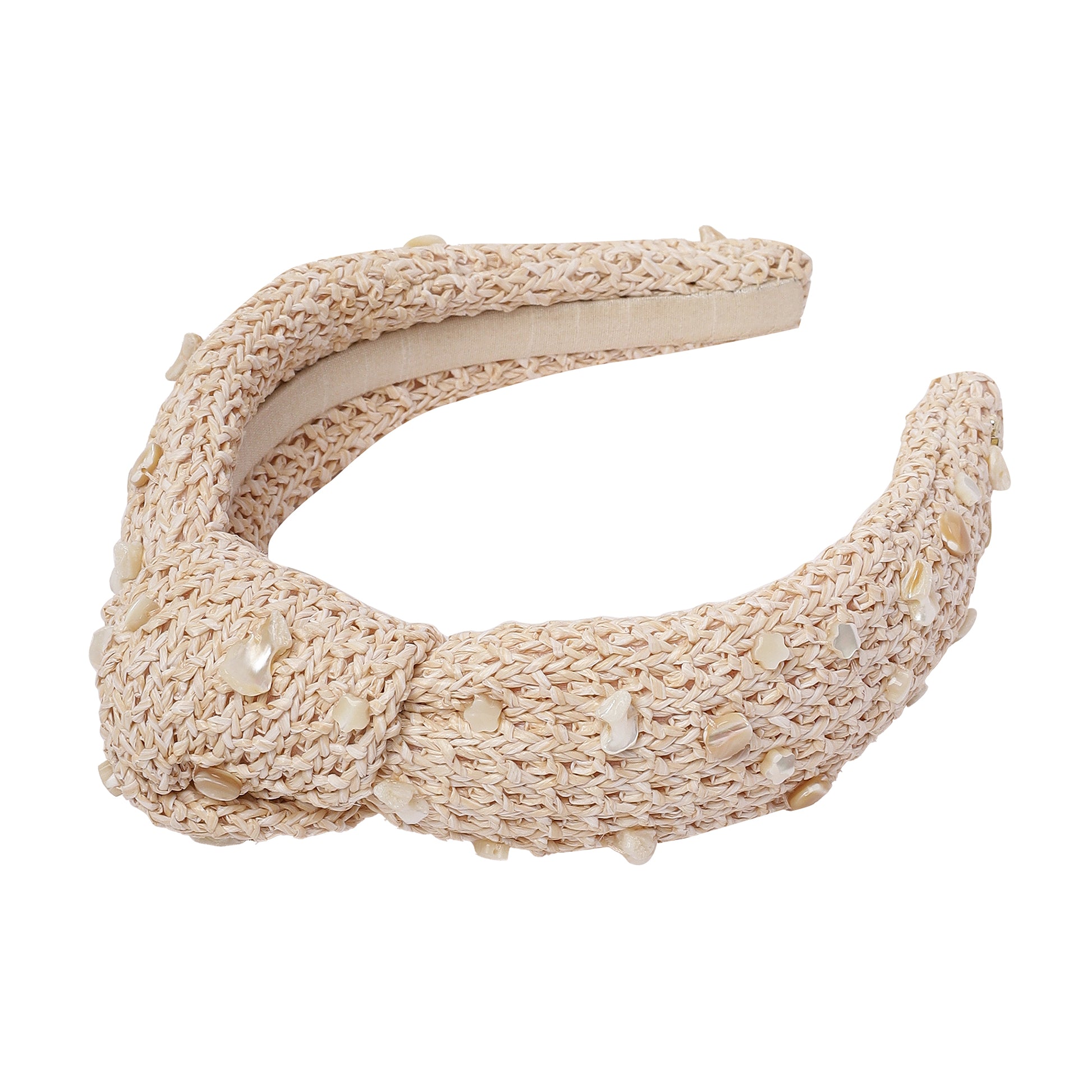 Meet the showstopper of this season, your new go-to for easy elegance. Handcrafted from raffia, a natural palm fiber that’s lightweight yet durable, this knotted headband is finished with delicate mother-of-pearl details woven in by hand.It is the kind of accessory that makes dressing up effortless. Slip it on for your next vacay, brunch, or coffee date, and you’ll instantly feel polished without even trying. Chic, airy, and timeless, our artisanal headbands does all the glam work for you instantly!!