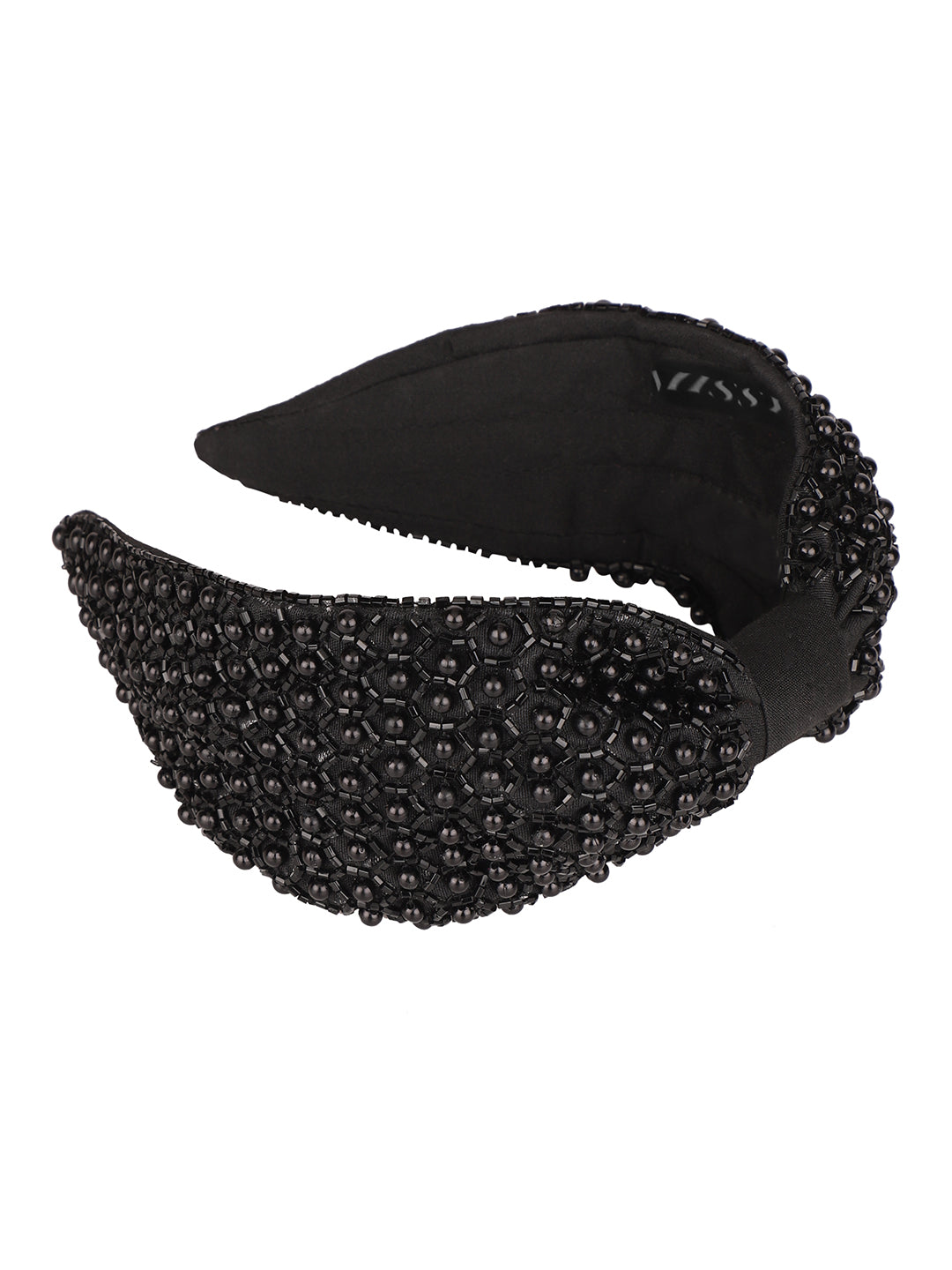 Look super classy and chic with this all-over pearl emebllised headband in Black! Handmade with luxe fabric and black pearls , this is a must-have