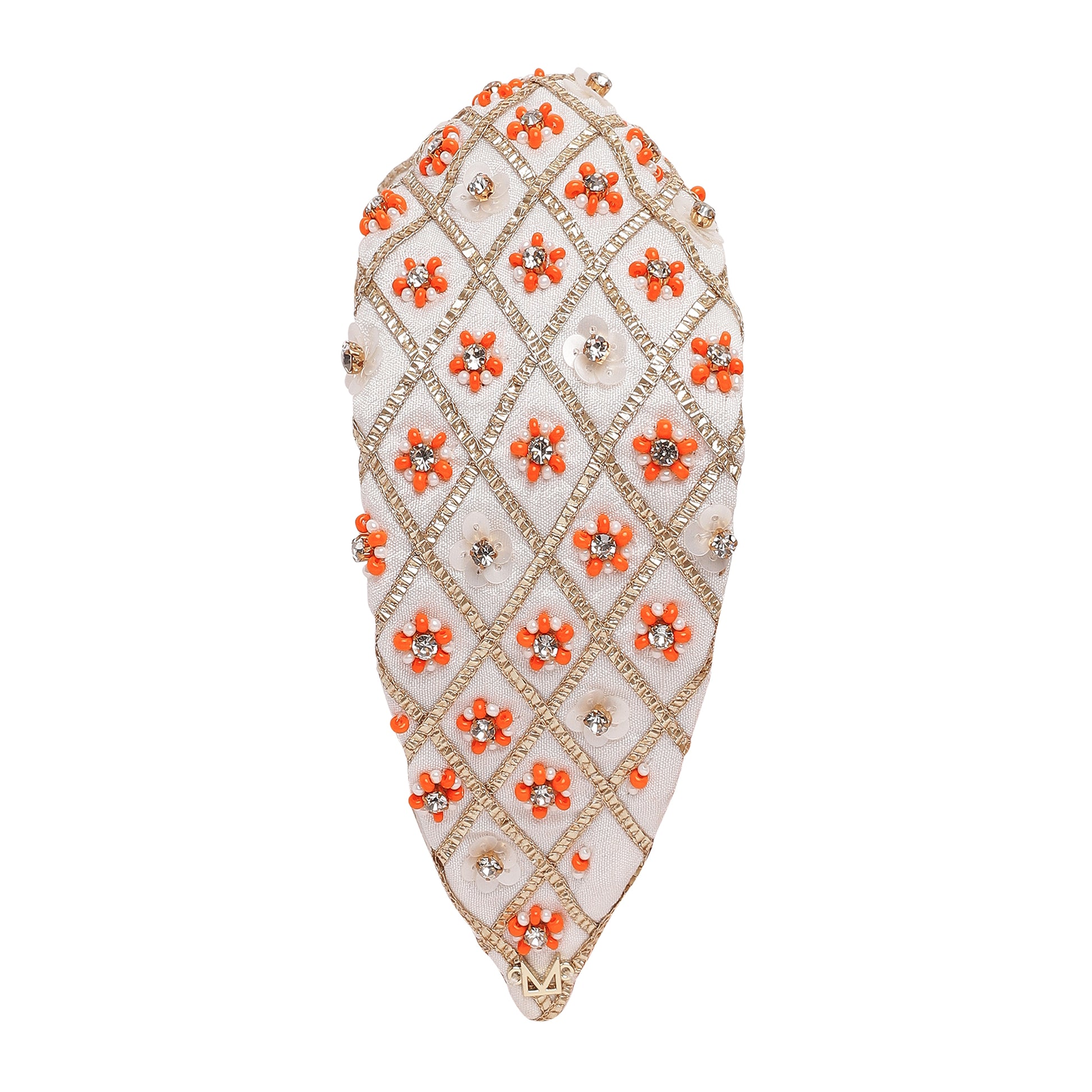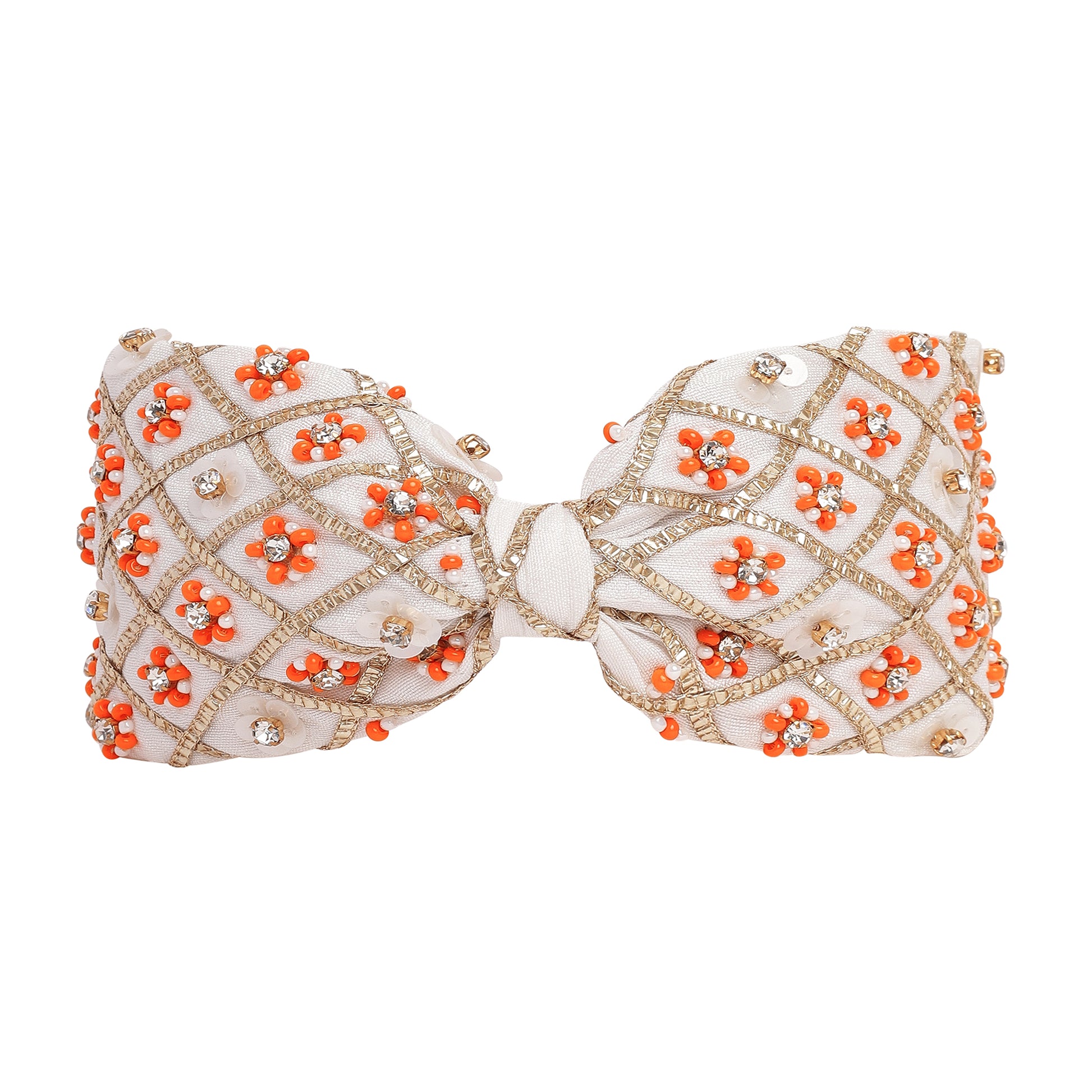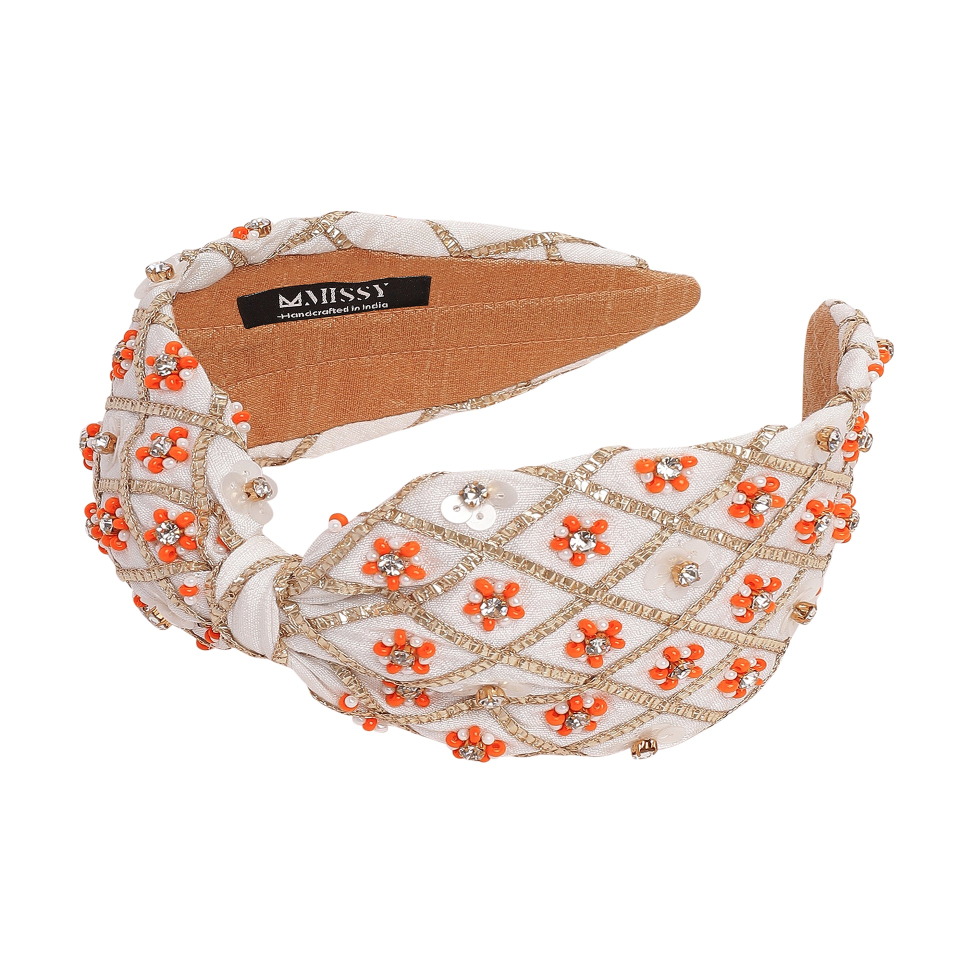 This beautifully knotted headband features intricate threadwork that flows in a delicate pattern, woven with subtle embellishments for a regal yet refined look.Perfectly lightweight and supremely comfortable, it’s your ultimate vacation accessory.