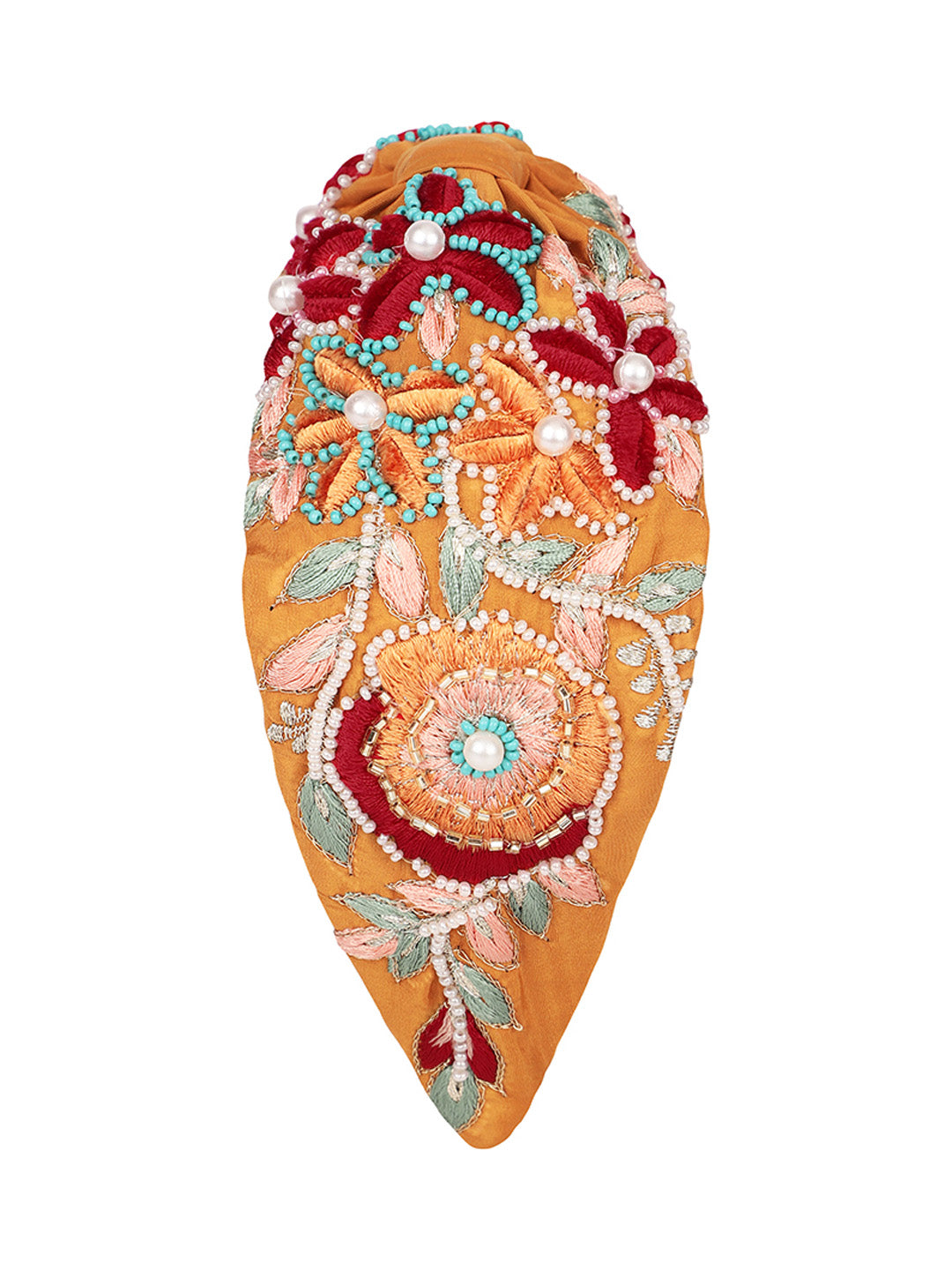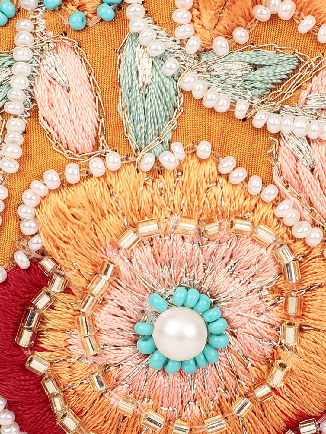 There can be no compromises when you want to slay your festive look. This no-so-subtle peppy headband handmade with pearls, threadwork and cutdana in vivid hues adds an irresistible charm to your outfit!