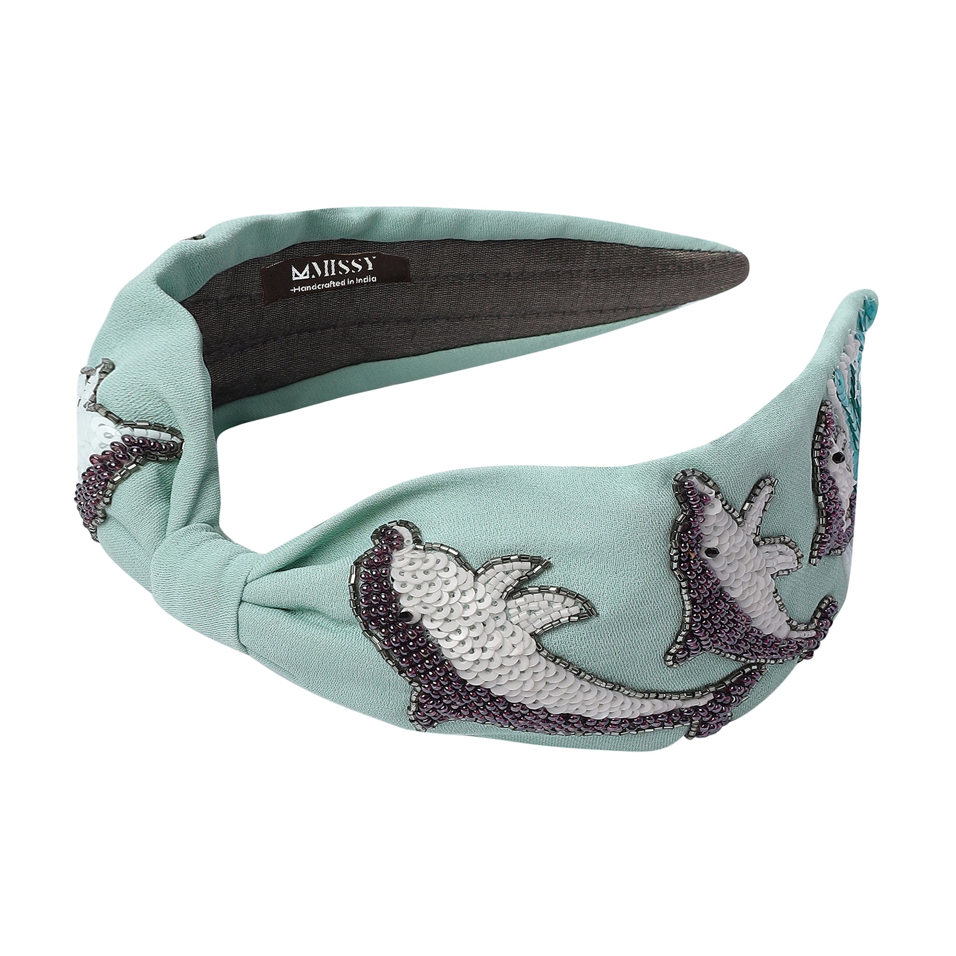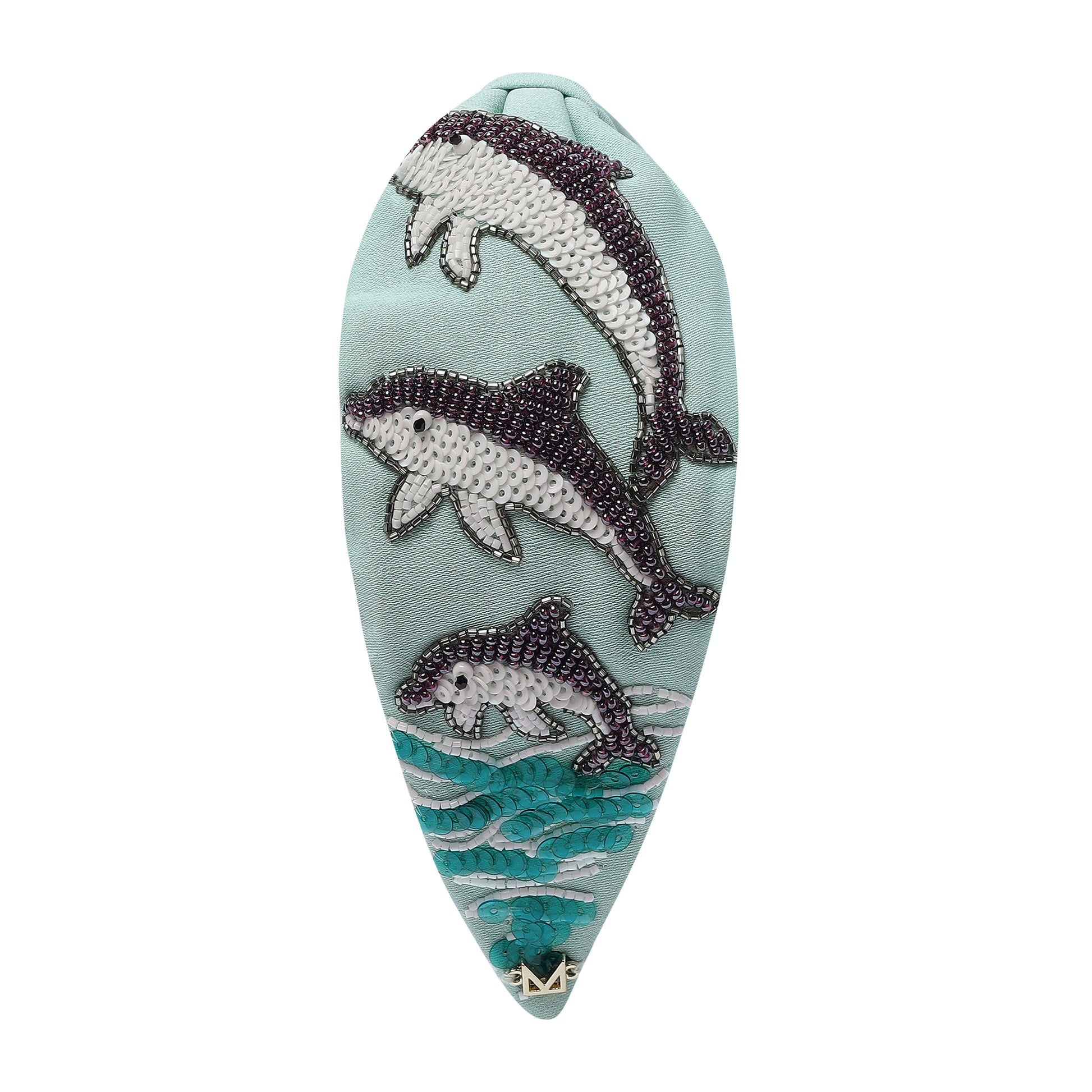 Make waves this summer with our Dolphin Dreams handcrafted headband - a playful twist on luxe styling. Featuring adorable dolphin motifs intricately woven with sequins and silk thread on rich, premium fabric, this knotted accessory is equal parts cute, stylish, and fun. Lightweight and versatile, it’s the perfect accessory to elevate your vacation wardrobe..