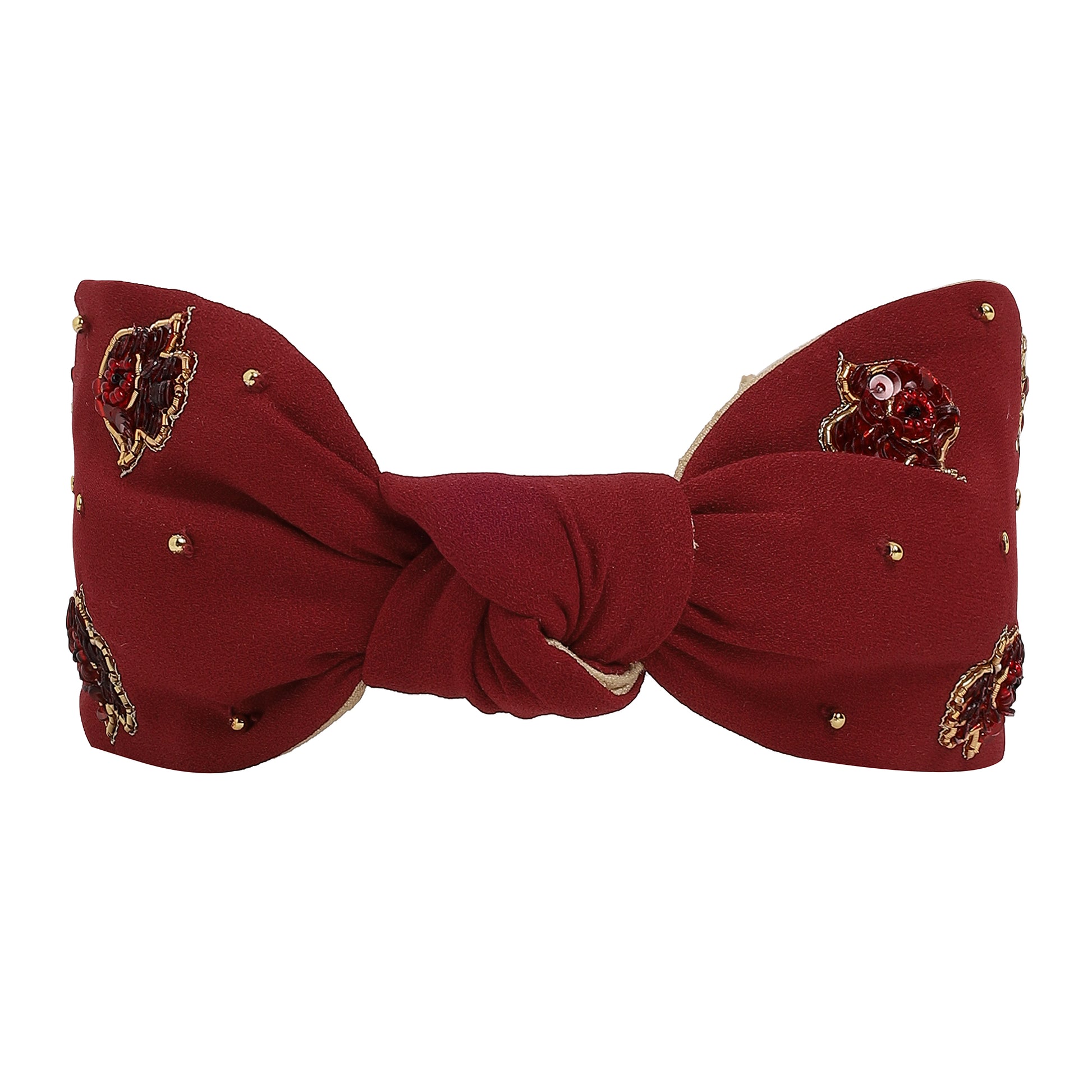 This handcrafted burgundy headband features delicate Hamsa motifs and tiny gold accents that add a touch of grace and protection to your everyday style. Comfortable, chic, and meaningful, this is the perfect piece to elevate your look with intention.