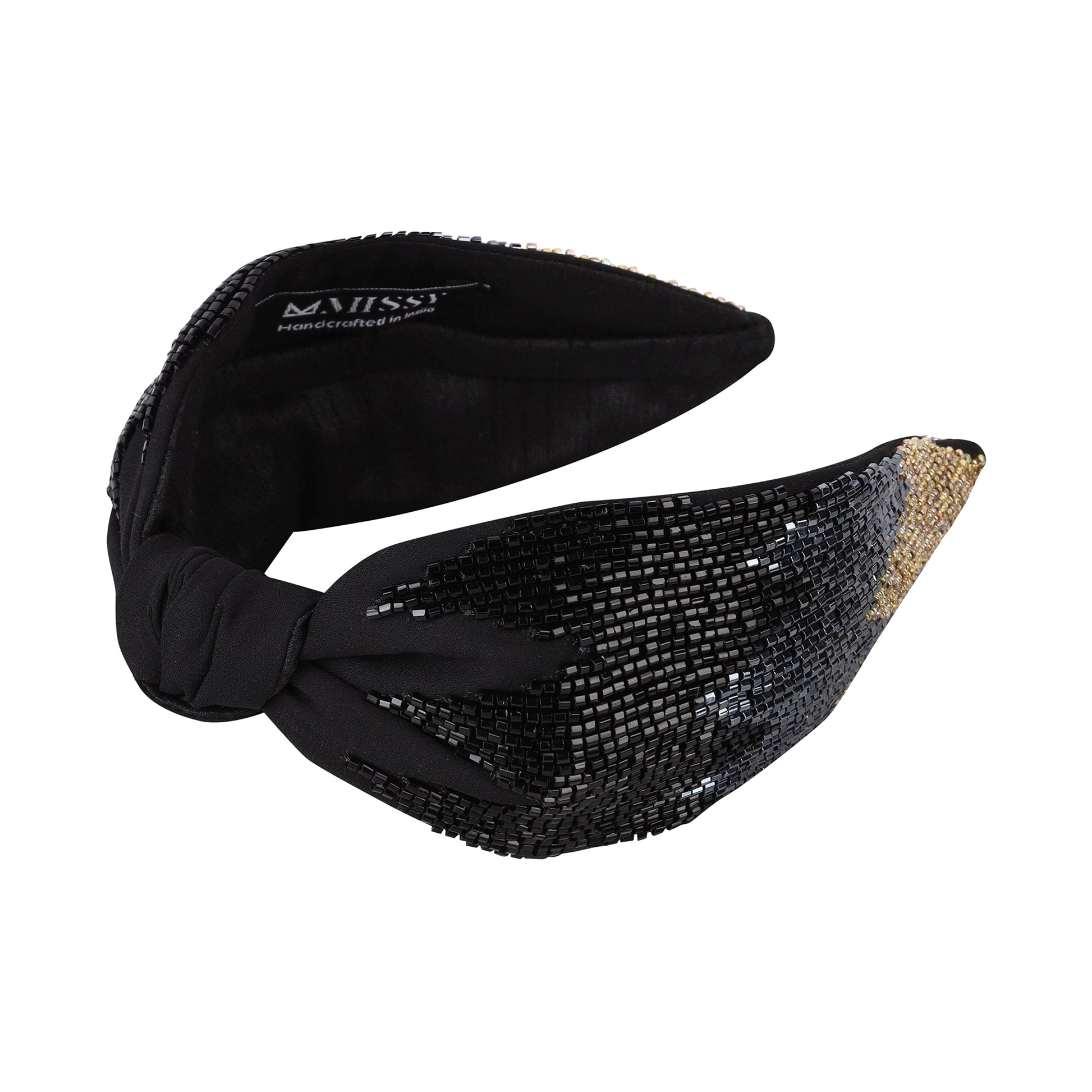 Elevate your evening ensemble with this glamorous headband, adorned with exquisite cutdana detailing to ensure you shine like a star.