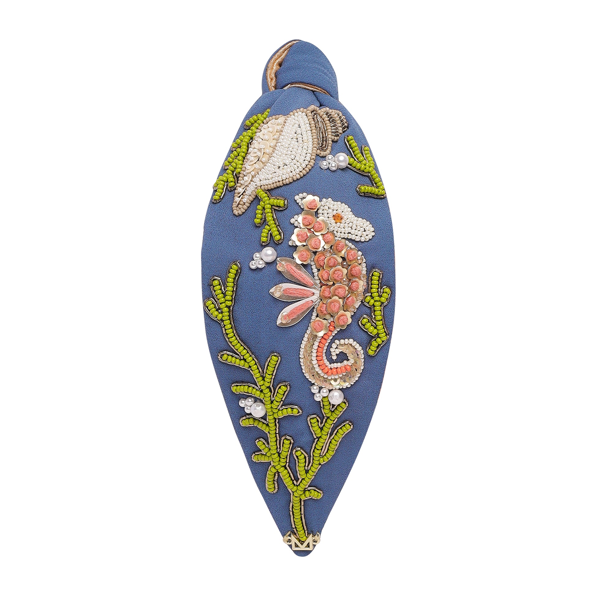 Dive into effortless style with our Seahorse Dreams Headband, where whimsical charm meets handcrafted elegance. Featuring a beautifully handwoven seahorse design on classic denim fabric, this head-turning accessory brings a splash of coastal magic to your look. Designed to be feather-light and effortlessly comfortable, it stays put all day without any fuss.