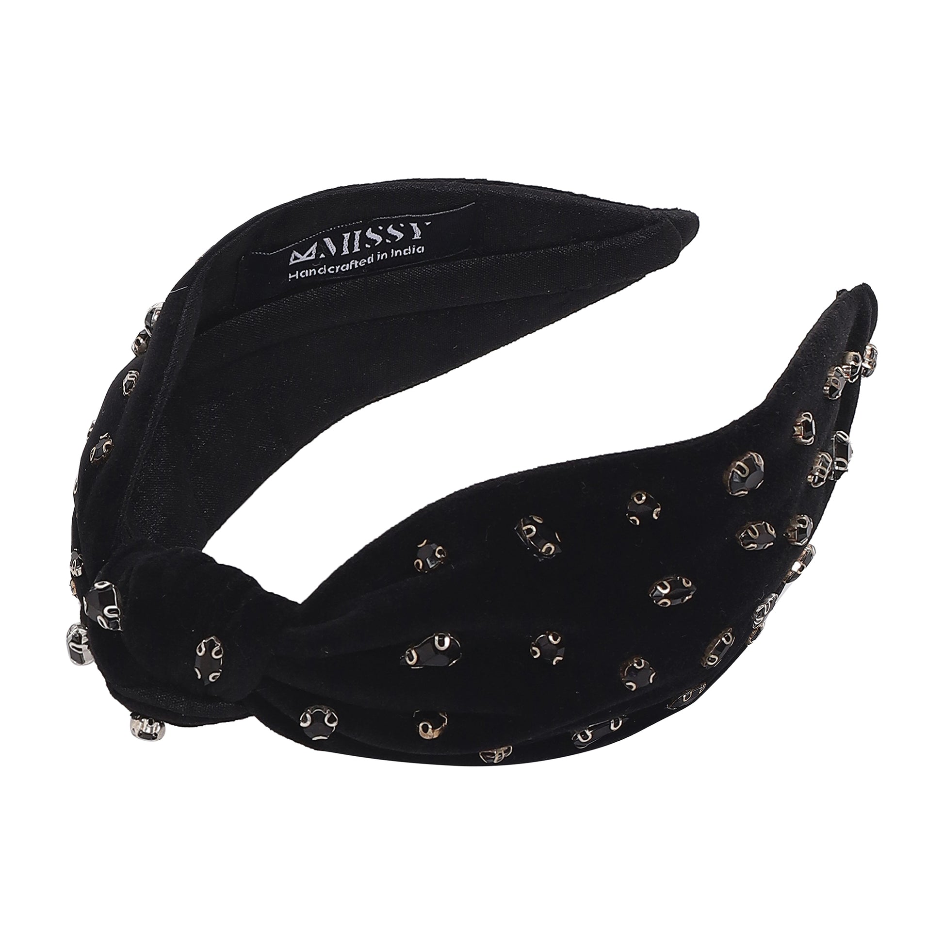 Elevate your festive look with this handmade knotted headband. Featuring pretty embellishments woven on a luxe fabric, it's perfect for celebrations or everyday elegance. The stylish knot detail adds a chic finishing touch to any outfit. Lightweight and comfortable for all your AM to PM looks